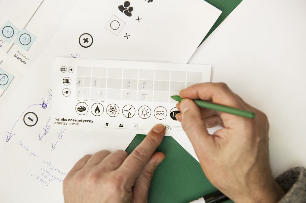 Oto pierwsza wersja dyskusyjnej gry kooperacyjnej remiks energetyczny. Została stworzona przez Fundację Pole Dialogu i Laboratorium EE na zlecenie Frakcji Zielonych w Europarlamencie. Zamysłem gry było wciągnięcie do rozmowy o polskim miksie energetycznym uczestników konferencji „Energia obywatelska dla dobrego klimatu”. Podczas pierwszej rozgrywki w remiks energetyczny grało niemal 100 osób przy 16 stolikach.